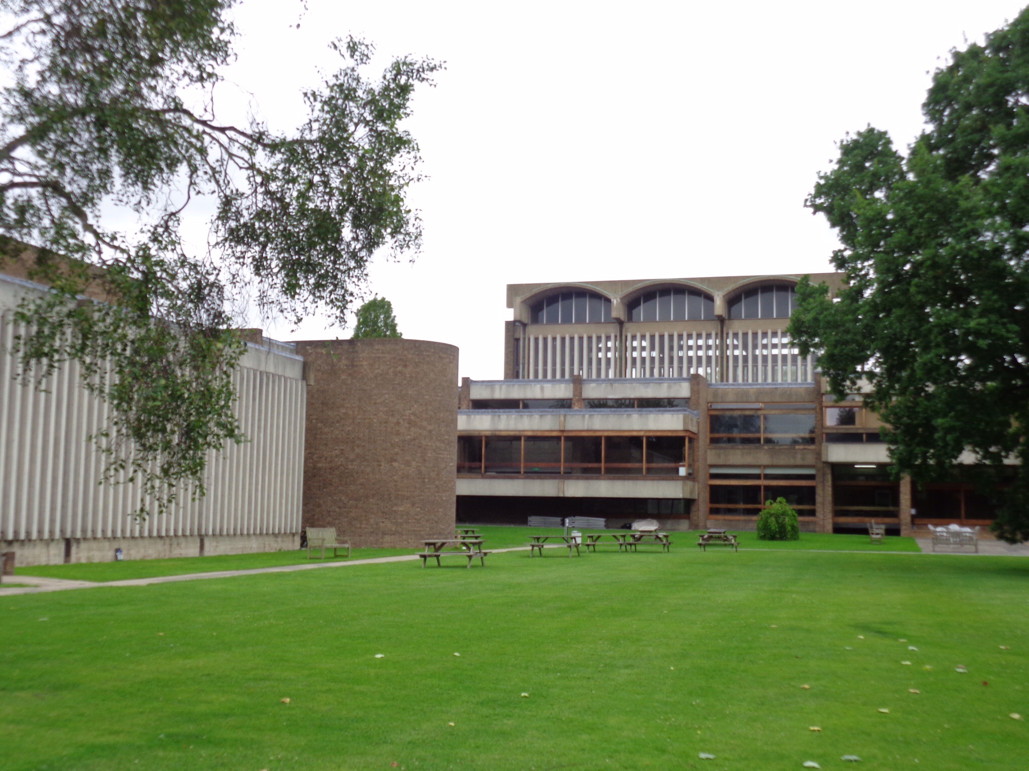 Cambridge Churchill College. Brutalist architecture. Looked like a giant Earl Grey School. Great Hall, chapel and all features of the older colleges, just modern architecture.