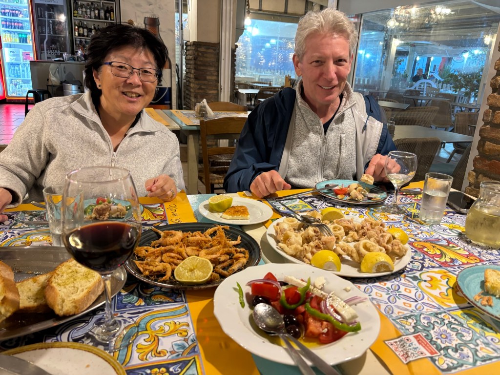 Rafina is a port town, second largest in Athens, after Piraeus. One can see all the sights in a short time but we’re enjoying trying all the tavernas in town.